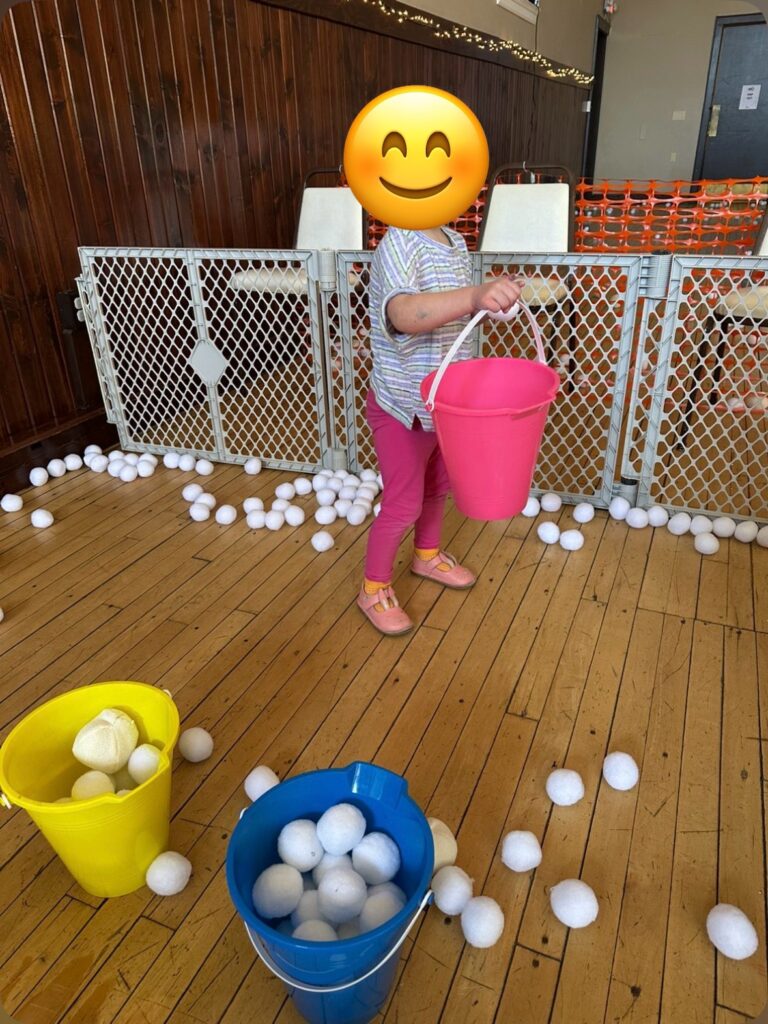 Something I still haven’t learned in my adult life – if you suggest it, it will become your baby. So now I was planning a snowball fight with no idea how we were going to execute it. Thankfully another volunteer had ideas for details. We set out to make sure that families would not want to miss out. I ordered 1000 snowballs from an online site. That was a start, but they were quite small and seemed awful light. There must be something better..